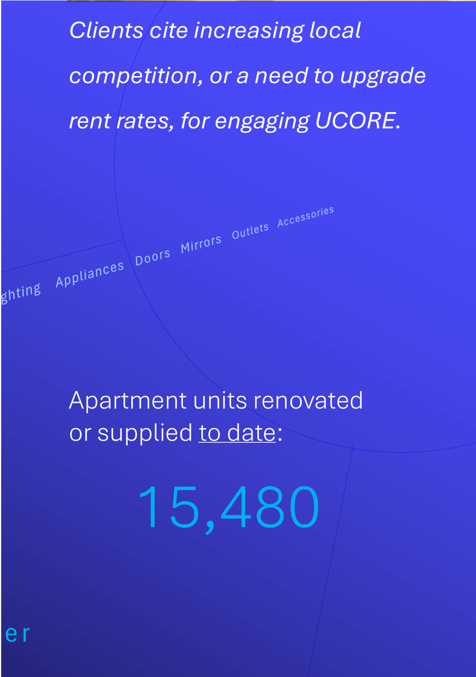 UCORE is a Design/Build Contractor specialized in renovation of 100+ unit Luxury & Market-rate Apartments nationwide. Whether units are occupied or unoccupied, our turnkey program updates units quickly, beautifully, and affordably, coordinated to ensure tenant comfort & convenience is preserved.